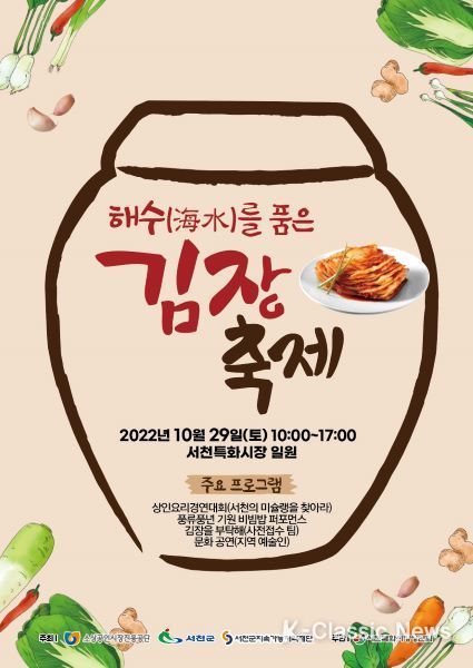 K-Classic News 강희현 기자 | 서천군지속가능지역재단과 서천특화시장 상인회가 오는 29일 서천특화시장 일원에서 침체한 지역경제 활성화와 특화상품 개발을 위해 ‘해수(海水)를 품은 김장축제’를 개최한다.