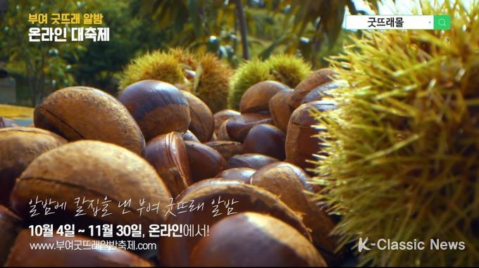 K-Classic News 강희현 기자 | 다음 달 30일까지 일정으로 열리는 ‘제17회 부여 굿뜨래 알밤 온라인 축제’가 호응 속에 순항하고 있다.