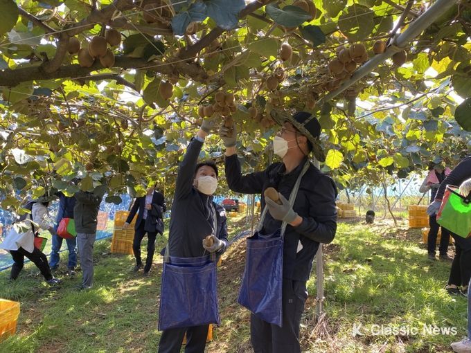 조규일 진주시장을 비롯한 농업기술센터 직원 50여 명이 지난 10월 26일에 문산읍 옥산리 참다래(키위) 재배 농가를 찾아가 참다래(키위) 수확을 함께 도우며 농촌에 활력을 불어 넣었다.