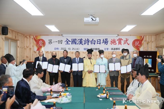 K-Classic News 강희현 기자 | 청도군은 지난 25일 청도향교 주관으로 유림회관에서 수상자와 관계자 100여명이 참석한 가운데 전국한시백일장 시상식을 가졌다.