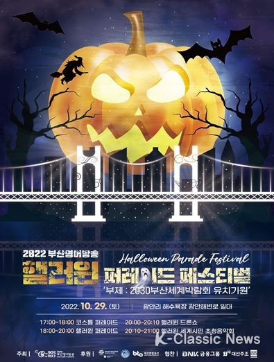 K-Classic News 박미영 기자 | 부산시는 29일 오후 6시(사전행사는 오후 4시부터) 광안리 광안해변로 일대에서 ‘2022 핼러윈 퍼레이드 페스티벌’이 개최된다고 밝혔다.