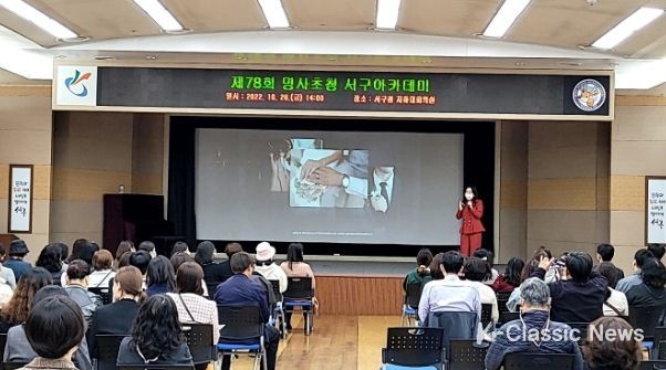 ‘명사초청 서구아카데미’는 교육, 건강, 교육, 인문학 등 다양한 분야 명사를 초청해 주민에게 수준 높은 특강을 제공하는 프로그램으로 올해 코로나 이후 2년 만에 재개돼 올해 두 차례 모두 성황리에 강연을 마쳤다.