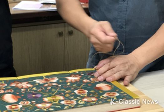 K-Classic News 박미영 기자 | 서울공예박물관은 서울시유형문화재인 '자수 연화당초문 현우경 표지'(이하 '현우경 표지')를 직조, 염색, 자수, 제책 등의 각 분야 전문가 협업으로 재현했다고 밝혔다.