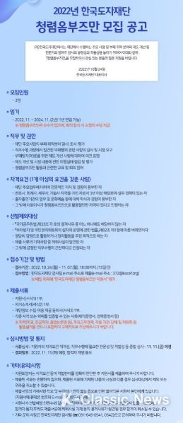 심사는 재단 내부 서류 심사로 진행되며 직무수행에 필요한 전문성과 적합성 등을 평가해 합격자를 선정한다.