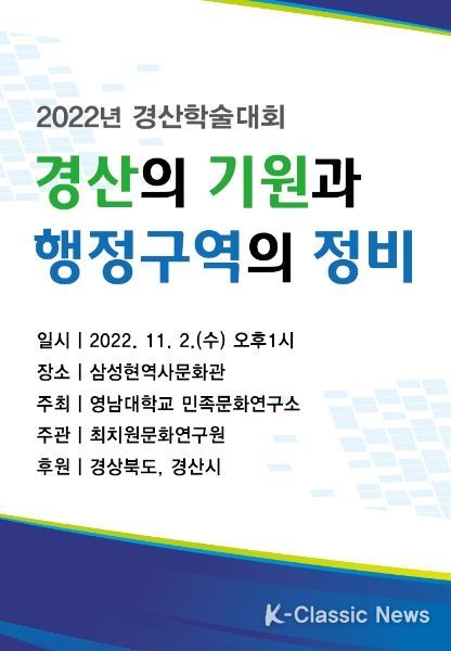 K-Classic News 최태문 기자 | 삼성현역사문화관에서는 2일 ‘경산의 기원과 행정구역의 정비’라는 주제로 학술대회를 개최한다.