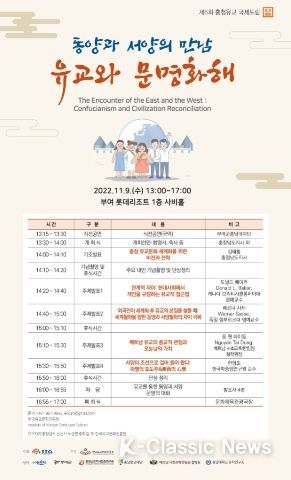 K-Classic News 박미영 기자 | 충남도는 오는 9일 한국유교문화진흥원과 부여 롯데리조트에서 ‘제6회 충청유교 국제포럼’을 개최한다.
