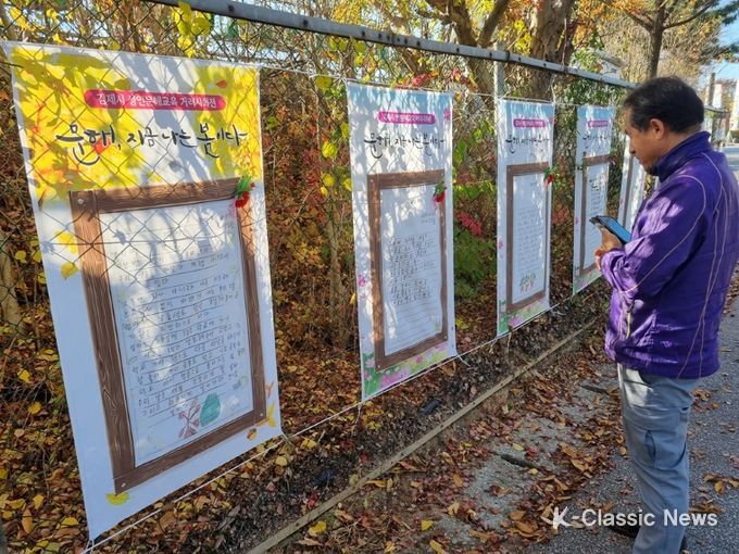 K-Classic News 강희현 기자 | 김제시는 비문해학습자에게 기초문해교육 등 제2의 학습기회 제공을 위해 추진되는 '교육부 성인문해교육지원사업'의 일환으로 '2022 김제시 성인문해 거리시화전'이 시민문화체육공원 일원에서 오는 17일까지 펼쳐진다고 밝혔다.