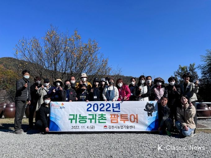 K-Classic News 강희현 기자 | 김천시는 지난 11월 4일 구성면 “장만나는”농장 외 2개 농장에서 귀농·귀촌을 희망하는 타시군 도시민과 혁신도시 공공기관 임직원 30여 명을 대상으로 팜투어를 진행했다.