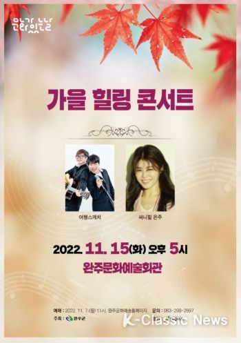 현재 한국에서 가장 인기 있는 포크 록밴드 여행스케치와 4인조 여성 그룹 써니 힐의 멤버 은주가 올 가을 완주군민들에게 감동을 선사한다.
