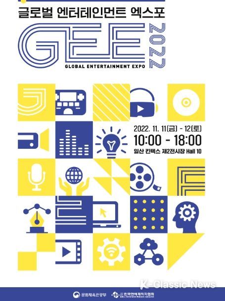 K-Classic News 최태문 기자 | 문화체육관광부는 (사)한국연예제작자협회(회장 임백운)와 함께 엔터테인먼트업체의 해외 진출과 인재 채용을 지원하기 위해 11월 11일과 12일, 일산 킨텍스 제2전시장 10홀(Hall)에서 ‘2022 글로벌 엔터테인먼트 엑스포(2022 Global Entertainment Expo)’를 개최한다.