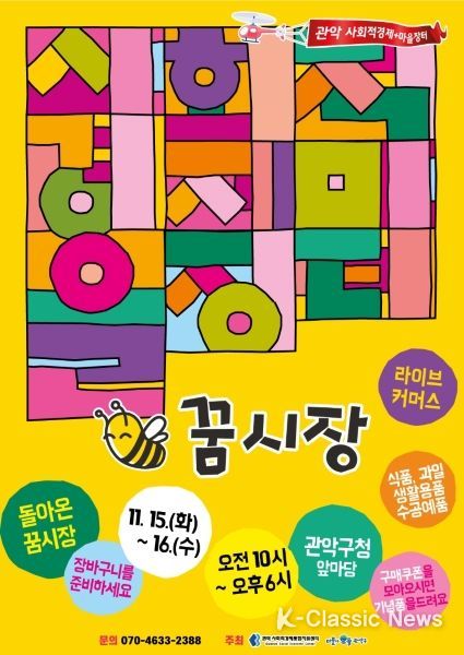 K-Classic News 강희현 기자 | 관악구의 대표적 사회적경제장터인 ‘꿈시장’이 코로나19 발생 이후 3년 만에 오는 15일부터 16일까지 이틀간 관악구청 광장에서 개장한다.
