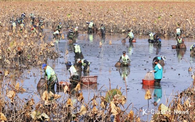 K-Classic News 최태문 기자 | 지난 11일 전남 강진군 병영면 중고마을 저수지에서 전통 농어업유산인 ‘가래치기’를 하는 주민들의 바쁜 움직임과 구경꾼들의 함성으로 왁자지껄해 마치 큰 잔치가 벌어진 듯하다.