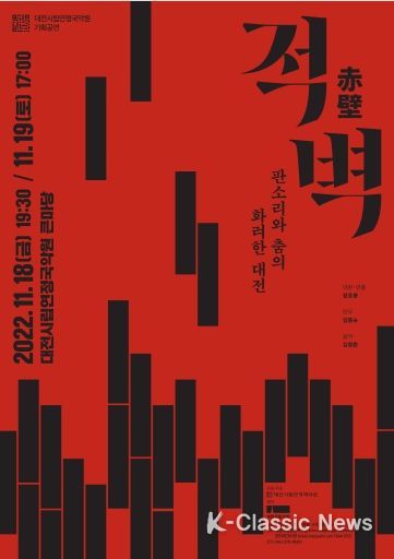 K-Classic News 박미영 기자 | 대전시립연정국악원은 국립정동극장의 대표적인 레퍼토리 작품인 판소리 뮤지컬‘적벽’공연을 11월 18일(금) ~ 19일(토) 까지 국악원 큰마당에서 개최한다고 밝혔다.