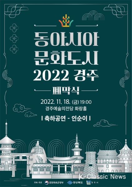 K-Classic News 강희현 기자 | 경주시가 올 한 해 동안 한중일 3국의 문화교류 활동으로 채워진 ‘2022 동아시아문화도시 경주’ 사업의 대미를 장식할 폐막식을 오는 18일 경주예술의전당에서 개최한다.