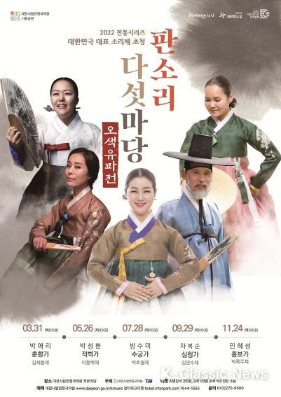 판소리 다섯마당은 3월 31일‘박애리의 춘향가’를 시작으로 5월 26(목)‘박성환의 적벽가’ 7월 28(목)‘방수미의 수궁가’ 9월 29(목)‘차복순의 심청가’11월 24일 ‘민혜성의 흥보가’로 마무리된다.