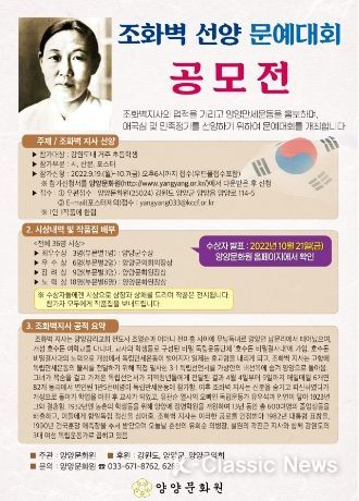 K-Classic News 박미영 기자 | 양양문화원이 주관하고 양양군이 지원하는 ‘조화벽 선양 문예대회 공모전’이 지난 11월 18일 마무리됐다.