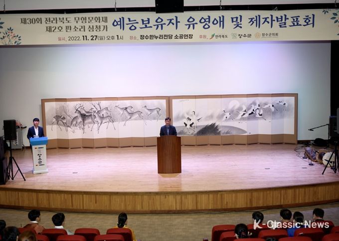 K-Classic News 강희현 기자 | 전라북도 무형문화재 제2호 판소리 ‘심청가’ 예능보유자 유영애 명창의 공개행사가 지난 27일 장수 한누리전당 공연장에서 개최됐다.