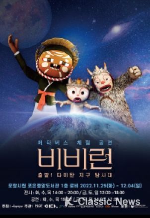 K-Classic News 최태문 기자 | 문화체육관광부가 후원하고 예술경영지원센터가 주최하며 ㈜피엘오티, ㈜이다엔터테인먼트, 포항문화재단, 포항시립도서관, 원주문화재단, 세종시문화재단이 공동 주관하는 메타버스 체험 공연 ‘비비런: 출발! 타이탄 지구 탐사대’가 11월 29일부터 포항에서 공연을 개최한다.