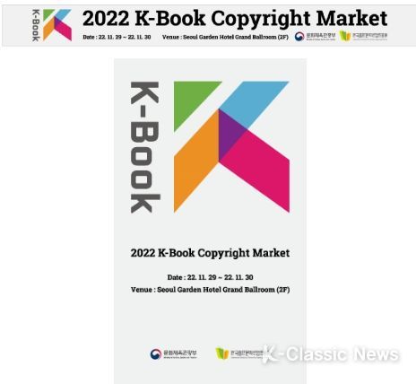 K-Classic News 최태문 기자 | 문화체육관광부는 한국출판문화산업진흥원(원장 김준희)과 함께 11월 29일부터 30일까지 서울가든호텔(마포구) 2층에서 국내 출판기업의 해외시장 진출을 지원하는 ‘2022년 케이-북 저작권마켓(K-Book Copyright Market)’을 개최한다. 지난 2년간은 코로나19 확산 방지를 위해 비대면 형식으로 진행했으나, 올해는 3년 만에 대면 행사로 진행한다.