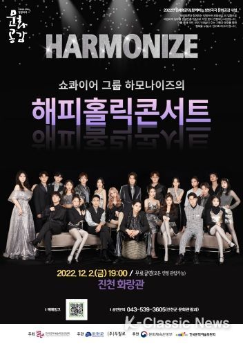 K-Classic News 박미영 기자 | 진천군이 음악 쇼콰이어그룹 하모나이즈의 ‘해피홀릭 콘서트’를 오는 12월 2일 19시 진천화랑관에서 선보인다.
