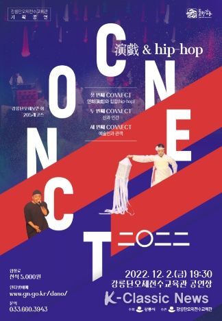 K-Classic News 박미영 기자 | 강릉시는 오는 12월 2일 오후 7시 30분 강릉단오제전수교육관 공연장에서기획공연'演戲[연희]&Hip-Hop“CONNECT二○二二”'을 한다.