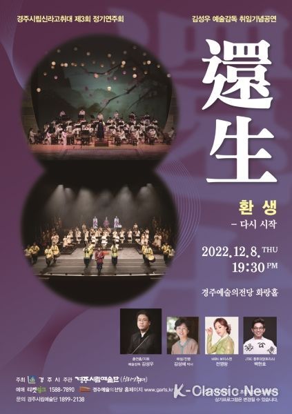 K-Classic News 강희현 기자 | 경주시의 대표 문화콘텐츠인 경주시립신라고취대의 제3회 정기공연 ‘환생-다시 시작’이 12월 8일 경주예술의전당 화랑홀에서 펼쳐진다.