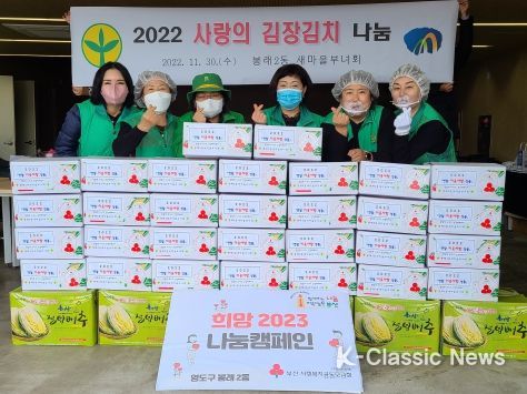 K-Classic News 김성연 기자 | 영도구 봉래2동 새마을부녀회에서는 지난 11월 30일 봉산센터 마을회관에서 ‘2022년 사랑의 김장 나눔 행사’를 개최했다.
