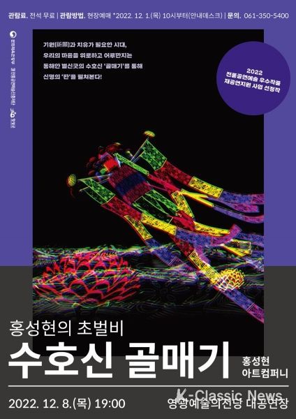 K-Classic News 강희현 기자 | 영광군은 오는 12월 8일 영광예술의전당 대공연장에서 2022년 전통공연예술진흥재단 지원사업 프로그램으로‘홍성현의 초벌비(수호신 골매기)’공연을 선보인다.