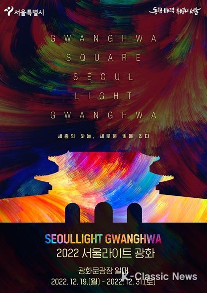 K-Classic News 최태문 기자 | 19일 저녁 6시, 어둠이 내려앉은 광화문광장 일대를 화려한 빛과 음악이 가득 채운다. 광화문광장에 새롭게 설치된 6m 높이의 조명기둥(라이팅 폴) 22개에서 뻗어나온 빛 줄기가 밤 하늘을 수놓고, 광화문광장 대형 미디어파사드와, 광장을 둘러싸고 있는 세종문화회관, ㈜KT빌딩, 대한민국역사박물관(이하 역사박물관) ‘광화벽화’에서는 웅장한 빛의 쇼가 펼쳐진다.