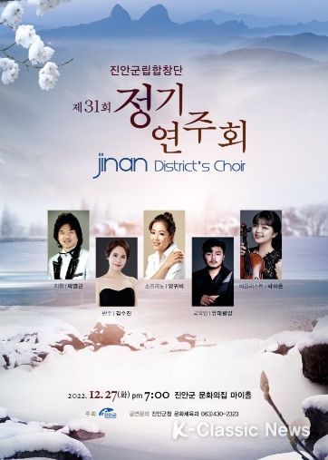 K-Classic News 박미영 기자 | 진안군립합창단(단장 김종필 진안부군수, 지휘 박영근)이 오는 27일 오후 7시 진안문화의집 마이홀에서 제31회 정기연주회를 연다.