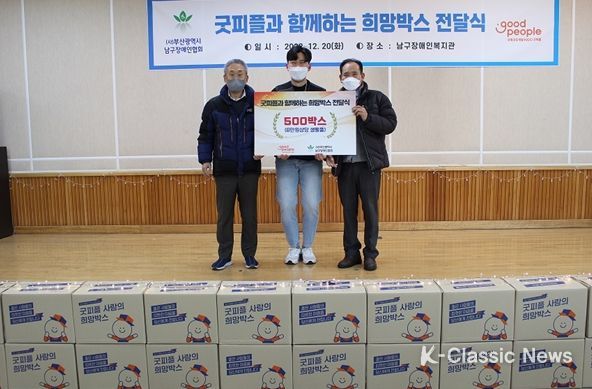 K-Classic News 김성연 기자 | 사)부산광역시남구장애인협회에서는 지난 20일 남구지역 장애인가정이 따뜻한 크리스마스를 보낼 수 있도록 남구장애인복지관에서“굿피플과 함께하는 희망박스 전달식” 행사를 개최했다.