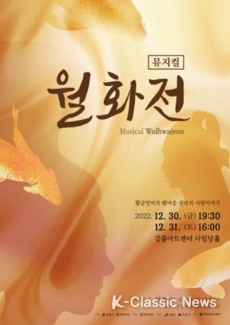 K-Classic News 박미영 기자 | 강릉에 전해 내려오는 고대 설화 속 주인공 무월랑과 연화 낭자의 사랑 이야기를 바탕으로 한 창작 뮤지컬‘월화전’이 오는 30일 오후 7시 30분, 31일 오후 4시 강릉아트센터 사임당홀에서 열린다.