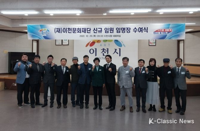 K-Classic News 최태문 기자 | 이천시는 12월 29일 시청 1층 대회의실에서 이응광 대표이사, 이사 10명, 감사 1명에게 임명장을 수여했다.