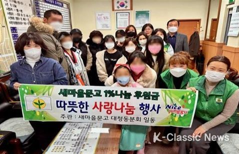 K-Classic News 김성연 기자 | 부산 중구 새마을문고 대청동분회는 지난 9일 대청동주민센터에서 1%나눔 후원금 따뜻한 사랑나눔 행사로 50만 원 상당의 문화상품권을 관내 취약계층 아동 10명에게 전달했다.
