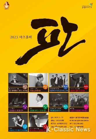 K-Classic News 박미영 기자 | 울산 중구문화의전당(관장 한은숙)이 2023년 '아츠홀릭 ‘판’'의 연간 공연 목록(라인업)을 공개했다.