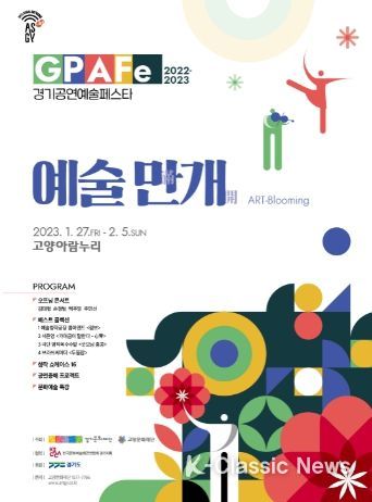 K-Classic News 박미영 기자 | 경기문화재단(대표이사 유인택)은 고양문화재단(이사장 이동환)과 함께 제9회 경기공연예술페스타(G-PAFe 2022-2023) “예술 만개”(이하 “경기공연예술페스타”)를 오는 1월 27일부터 2월 5일까지 고양아람누리에서 개최한다.