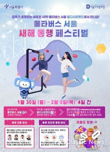 서울디지털재단은 '메타버스 서울 새해 동행 페스티벌'을 메타버스 서울 가상공간인 ‘월디시민랜드’에서 1월 30일(월)부터 2월 2일(목)까지 4일간 개최한다.
