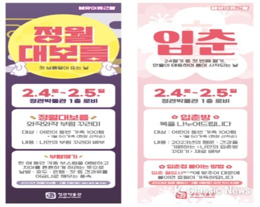 K-Classic News 박미영 기자 | 부산시 정관박물관은 입춘과 정월대보름을 맞이해 오는 2월 4일부터 5일까지 '봄맞이 둥근달' 행사를 개최한다고 밝혔다.