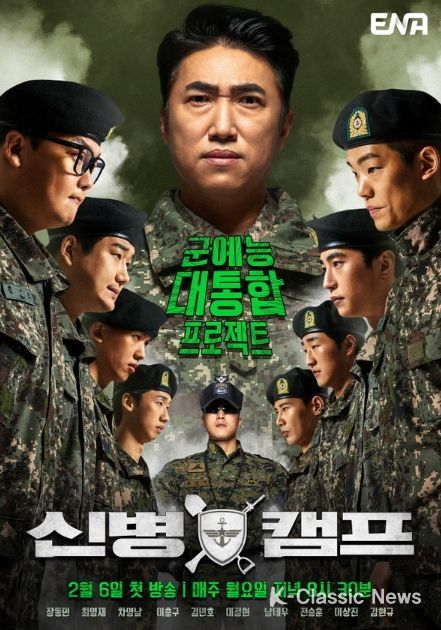 군대 콘텐츠계의 GOAT(Greatest Of All Time) 드라마 ‘신병’의 스핀오프이자 군예능 대통합 프로젝트 ENA 채널 ‘신병캠프’는 오는 2월 6일(월) 저녁 8시 30분에 ENA채널에서 첫 방송된다.