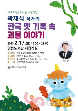 K-Classic News 박미영 기자 | ‘한국의 옛 기록 속 괴물이야기’를 주제로 곽재식 작가의 강연이 17일 익산 영등도서관에서 개최된다.