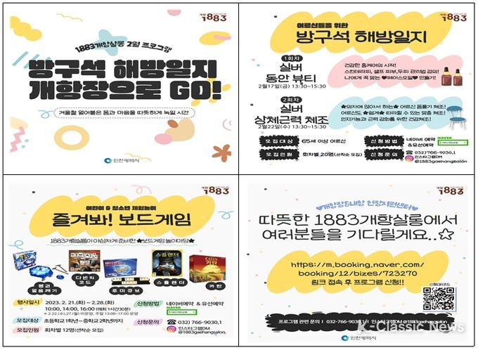 김창엽 시 제물포르네상스개발과장은 “1883개항살롱의 유익한 프로그램을 통해 지역 주민들이 건강하고 활기차게 생활할 수 있기를 기대한다”고 밝혔다.
