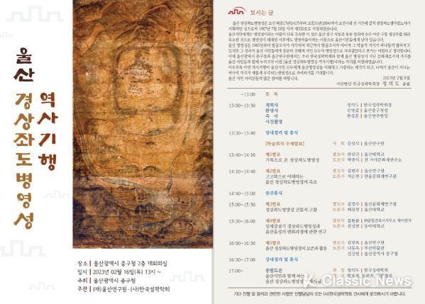 K-Classic News 박미영 기자 | 울산 중구가 오는 16일 오후 1시 중구청 대회의실에서 ‘울산 경상좌도병영성 역사기행’ 학술대회를 개최한다.