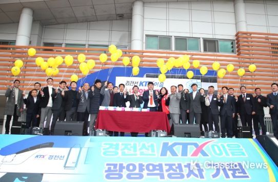 K-Classic News 최지은 기자 | 경전선 KTX-이음 광양역 정차 서명운동 5만 명 목표, 7만 명 달성을 기념하는 행사가 16일 오후 3시 광양역에서 진행됐다.