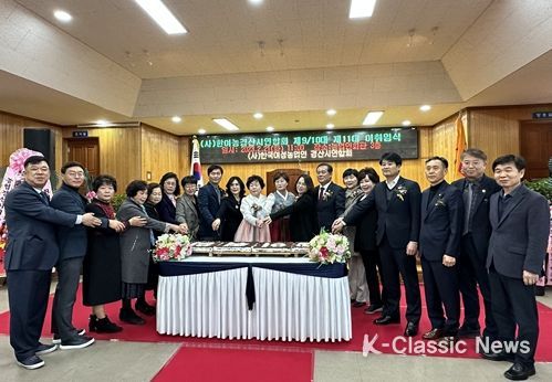 K-Classic News 김성연 기자 | (사)한국여성농업인 경산시연합회는 21일 농업인회관 3층 대회의실에서 회장 및 임원단 이 ·취임식을 개최했다.