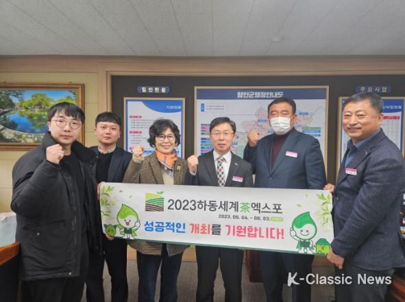 K-Classic News 박미영 기자 | (재)하동세계차엑스포조직위원회(위원장 박완수 경남도지사, 하승철 하동군수)는 지난 22일 함안군를 방문하여 2023하동세계차엑스포(5.4.~6.3.) 성공개최를 위한 유치활동을 전개했다.