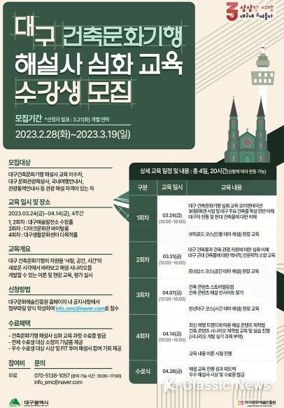 K-Classic News 최지은 기자 | 대구시와 (재)대구문화예술진흥원은 지역특화 관광브랜드로 다년간 추진 중인 대구건축문화기행 사업을 본격적으로 착수한다.