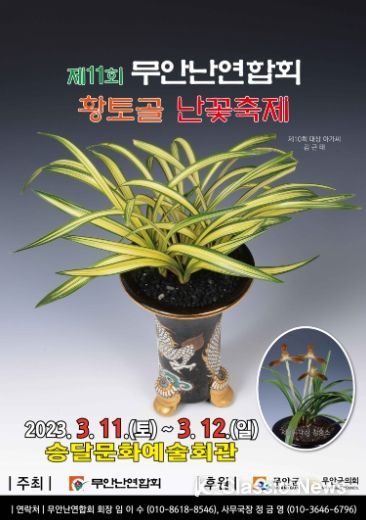 K-Classic News 최지은 기자 | 전남 무안군은 오는 11일부터 12일까지 이틀간 무안난연합회 주관으로 승달문화예술회관 소강당에서 제11회 무안난연합회 황토골 난꽃축제를 개최한다고 밝혔다.
