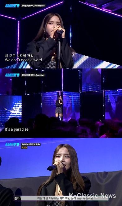 솔라는 감각적이고 트렌디한 ‘Paradise’의 사운드에 맞춰 특유의 청량한 음색, 가슴 뻥 뚫리는 파워풀한 고음, 노련한 무대 매너로 현장을 사로잡는다. 페스티벌급 무대를 방불케 하는 솔라의 존재감이 관객들은 물론 대기실 안 DJ들까지 완벽하게 사로잡았다는 후문.