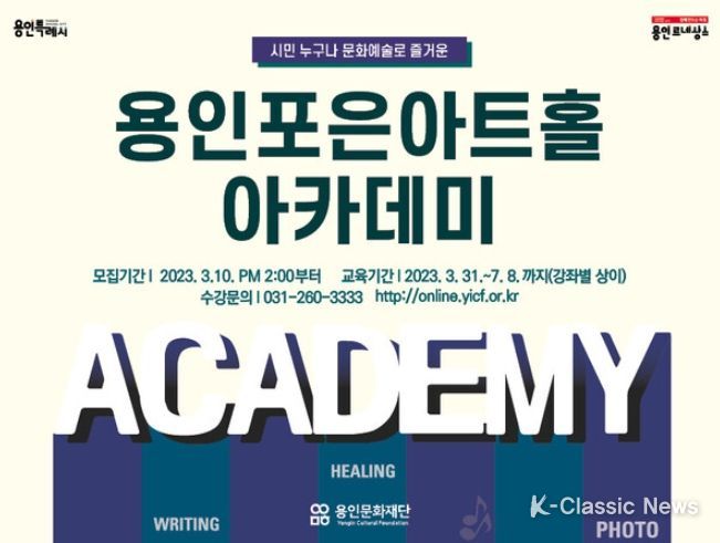 K-Classic News 최태문 기자 | 용인문화재단(이사장 이상일)이 문화도시 사업의 일환으로 추진하는 예술교육 프로그램인 ‘용인포은아트홀 아카데미’가 3월 10일부터 상반기 수강생을 모집한다.