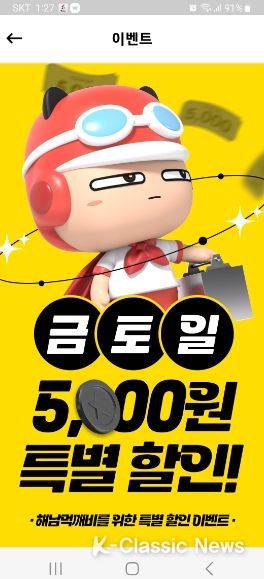 K-Classic News 최지은 기자 | 해남군은 전남 공공배달앱인‘먹깨비’할인쿠폰 제공 이벤트를 10일부터 실시한다.